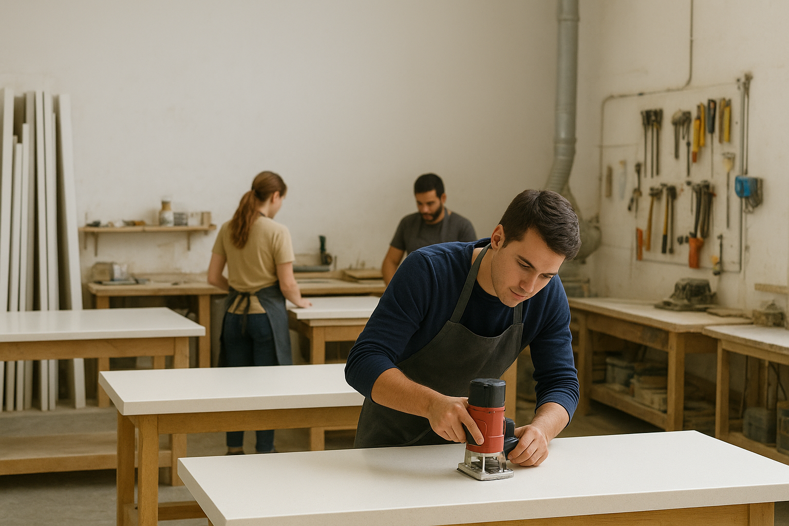 Mutfak tezgahı, banyo lavabo ve ticari projeler üretiyoruz. Büyük firma ve mağaza maliyetlerini yansıtmıyor, doğrudan atölye fiyatlarıyla hizmet veriyoruz.